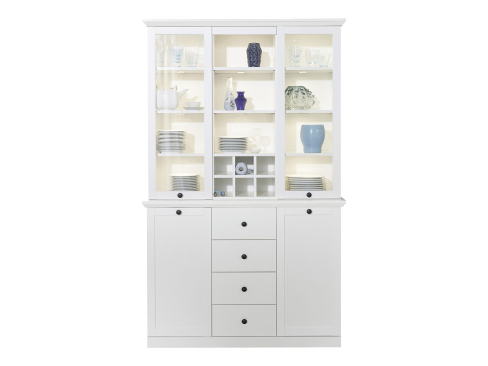 Vitrine GOODPRODUCT "Selma Highboard", weiss (weiß, gebeizt), B:100cm H:120cm T:38cm, Glas, MDF, Massivholz, Schränke, Vitrine, aus massivem Kiefernholz, mit Griffen aus antikisiertem Metall weiß, gebeizt weiss/gebeizt, B/H/T: 100cm x 120cm x 38cm, Schubl