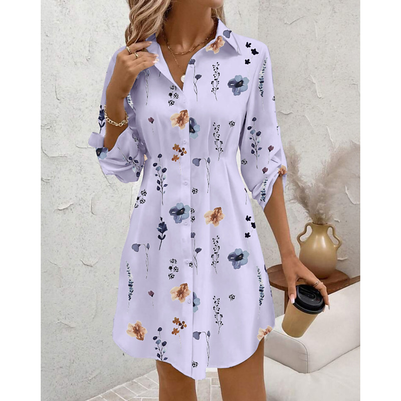 Women's Mini Dress Shirt Dress Print Dress Elegant Daily Fall Dress Regular Fit Floral Long Sleeve Shirt Collar Black White Pink Purple Fall