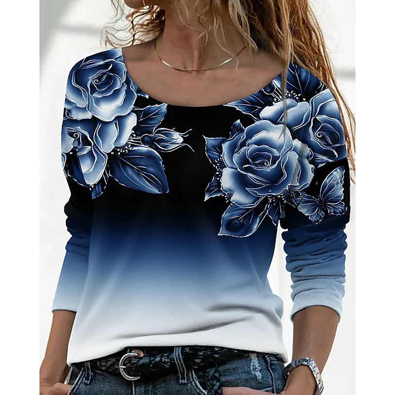 Women's Blouse Floral Graphic Vintage Tropical Stylish Long Sleeve Crew Neck Regular Tops Daily Holiday Going out Patchwork 3D Print Black Yellow Red Blue Purple Fall Winter