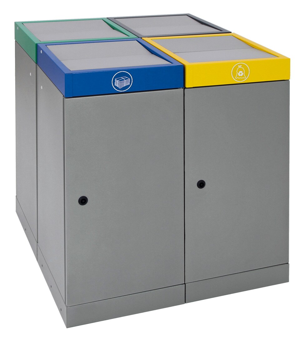 Abfalltrennung ProTec-Plus, 4-fach Abfall Insel, graualu-struktur/6024, 1003, 5010, 7016, verz. Innenbehälter, 4x70 Liter