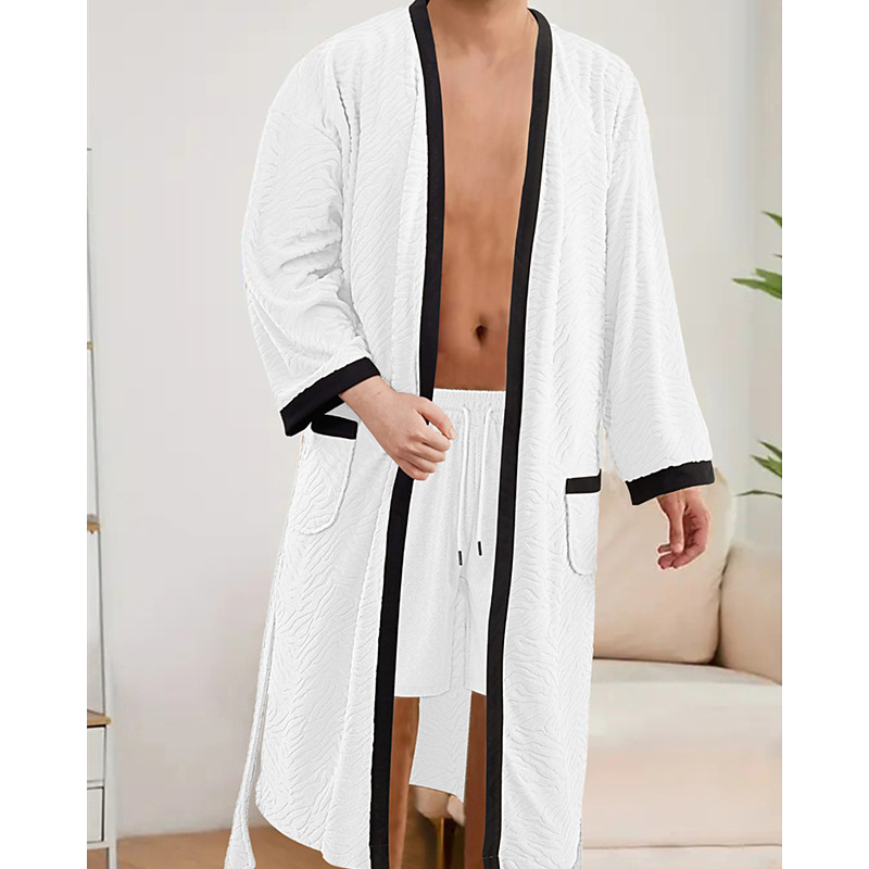 Men's Pajamas Sleepwear Bath Gown Plain Fashion Stylish Classic Home Daily Bed Polyester Comfort Soft V Neck Long Sleeve Pocket Belt Included Spring Fall Black White