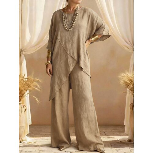 Per donna Set da due pezzi Set di Pantaloni Finto cotone e lino Manica Lunga Girocollo Semplice Moda Streetwear Casuale Quotidiano All'aperto Nero Bianco Giallo Estate Vestibilità comoda