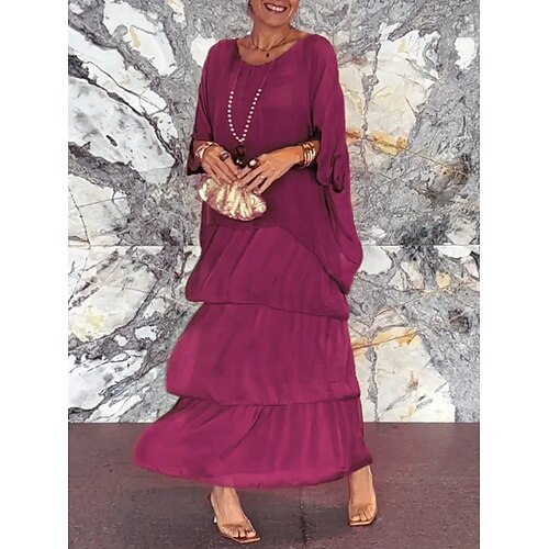 Per donna Insieme del vestito Vestito in Chiffon Formale Floreale Stampato Abito maxi Mezza Manica Girocollo Feste Viola Grigio Estate Vestibilità comoda