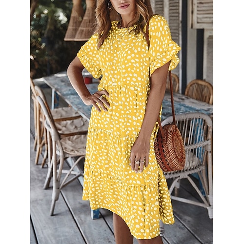Per donna Abito al ginocchio Abito Boho Vestito Casual Abito Floreale Elegante Moda Moderno All'aperto Vacanza Uscire Vestibilità comoda Grafico Manica Corta Girocollo Nero Bianco Giallo Verde
