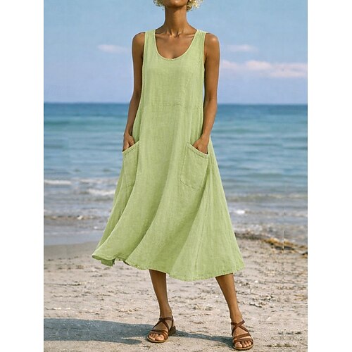 Per donna Abito maxi Abito a Tubino Vestito Estivo Casual Quotidiano Vestibilità comoda Semplice Senza Maniche Girocollo Blu Nero Bianco Verde chiaro Estate Primavera Autunno