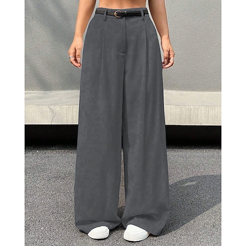 Per donna Gamba larga Pantaloni Eleganti Dritto Streetwear Casual Lunghezza intera Naturale Semplice Tasca Elastico in vita Fibbia Confortevole All'aperto Streetwear Uscire Verde mela Grigio scuro