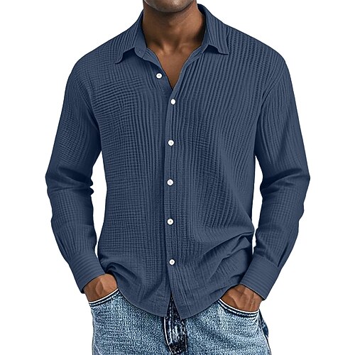 Per uomo Camicia Tessuto Camicia casual Camicia con Bottoni Nero Bianco Vino Blu marino Azzurro cielo Manica Lunga Semplice Bavero Casuale Quotidiano Abbigliamento Elegante Moda Casual