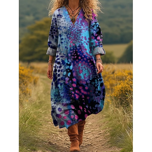 Per donna Abito Midi Abito a Tubino Casual Quotidiano Vestibilità comoda Grafico Paisley Manica Lunga Scollo a V Azzurro cielo Arancione Blu scuro Autunno Inverno