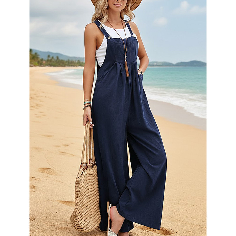 Women's Normal Jumpsuit Skims Solid Color Short Sleeve T-shirt Sleeve Wide Leg V Neck Lace up Daily Regular Fit Black White Army Green Summer
