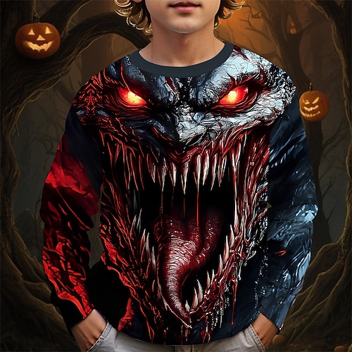 Halloween Jungen 3D Grafik T-Shirt Langarm Frühling Herbst Mode Basic Kinder 4-12 Jahre Rundhalsausschnitt Outdoor Lässig Täglich Normale Passform