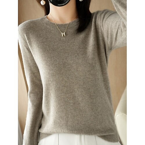 Per donna Felpa Casual Morbido Colore Puro A Coste Girocollo Lavorato a maglia Manica Lunga Top Regolari Maglia All'aperto Quotidiano Weekend Nero Rosso Autunno Inverno
