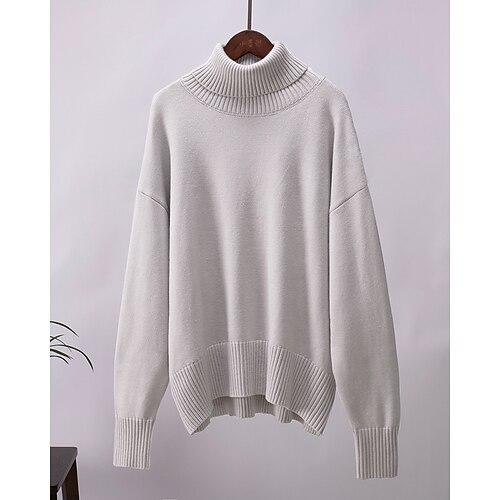 Per donna Felpa Maglione Vintage Moda Streetwear Tinta unica Dolcevita Lavorato a maglia Manica Lunga Top Regolari Maglia Quotidiano Ferie Uscire Nero Bianco Autunno Inverno
