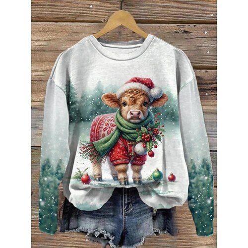 Per donna Felpa Pullover Grafico Animale Mucca Casual Manica Lunga Girocollo Top Regolari Streetwear Abbigliamento Quotidiano Casuale Patchwork Nero Bianco Rosso Viola Verde Autunno Inverno