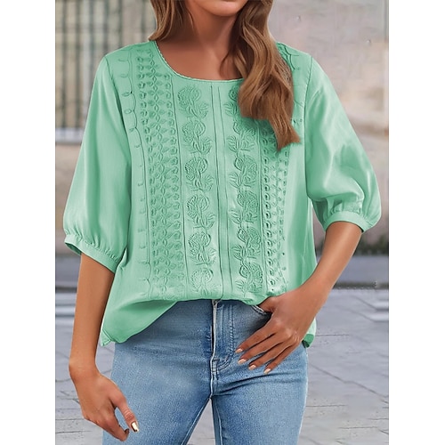 Per donna Blusa Floreale Elegante Casual Manica 3/4 Girocollo Top Regolari Quotidiano Ricamato Blu Nero Rosa Verde Estate Primavera
