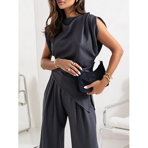 Per donna Elegante Moda Streetwear Set di Pantaloni Bolero Top Senza Maniche Girocollo Tinta unica Casuale Quotidiano All'aperto Grigio scuro Nero Bianco Estate Vestibilità comoda