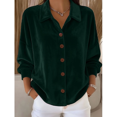 Per donna Blusa Tinta unica Vintage Casual Manica Lunga Colletto a Camicia Top Regolari Quotidiano Bottoni Blu Nero Vino Viola Verde Primavera Autunno Inverno