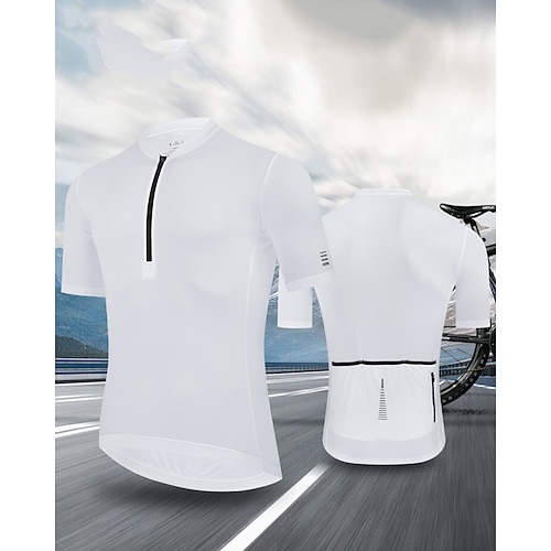 Herren Radtrikot Einheitliche Farbe Kurzarm Fahhrad Trikot Oberteil mit 3 Gesäßtaschen UV-beständig Schnelltrocknend Rückentasche Schweißableitend Sport Schwarz Weiß Rote Bekleidung