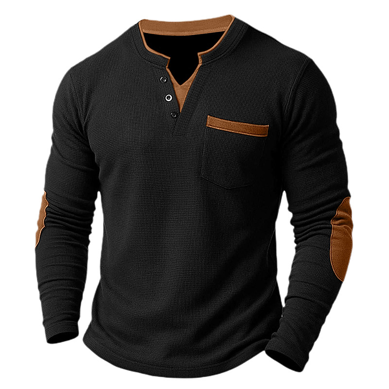 Men's Waffle Tee Waffle Henley Shirt Shirts With Elbow Patches Long Sleeve V Neck Henley Winter Spring Fall Solid Color Fashion Basic Modern Fake two piece Casual Street Sports Black Green Navy
