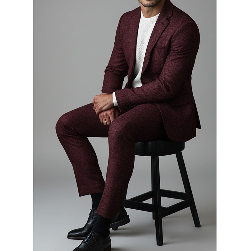 Men's Wedding Business Tweed Suits Notch Lapel Black Burgundy Daily Business Solid Colored Standard Fit 2 Piece Single Breasted Two-buttons
