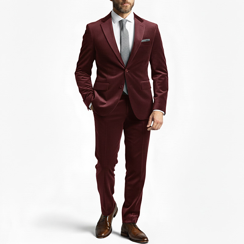 Men's Casual Business Wedding Suits Notch Lapel Black Burgundy Party Business Solid Colored Slim Fit 3 Piece Single Breasted Two-buttons