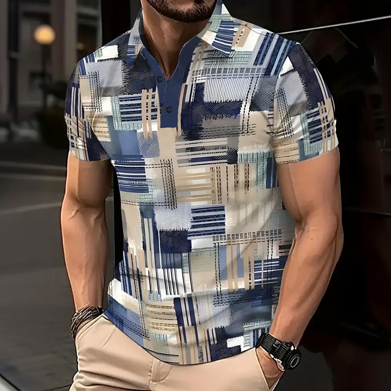 Per uomo Geometrico Polo con zip Maglia da golf Manica Corta Magliette polo Camicie con Colletto Business Casual Abbigliamento da vacanza Abbigliamento Formale Abbigliamento da festa Stampa 3D Polo