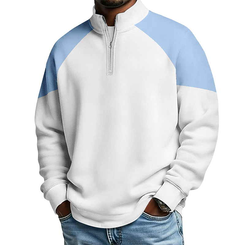 Men's Color Block Zip Polo Shirts Long Sleeve Polo Shirts Grandad Collar Casual School Athleisure Holiday Daily Wear 3D Print Quarter Zip Polo Spring Fall Blue White Green