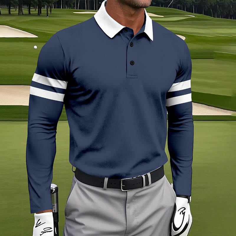 Men's Stripes Polo Sports Polo Shirts Long Sleeve Polo Shirts Collared Shirts Sportswear Athleisure Daily Wear 3D Print Spring Fall Winter Navy Blue Light Brown Sky Blue