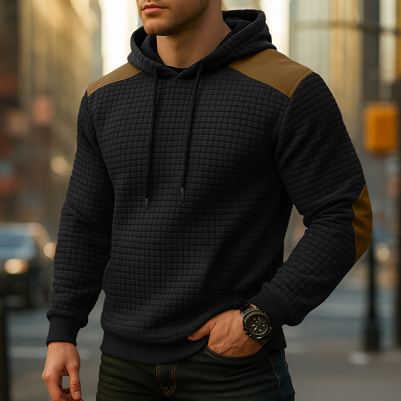 Men's Jacquard Hoodie Pullover Hoodie Sweatshirt Black Navy Blue Khaki Light Grey Hooded Plain Patchwork Color Block Kangaroo Pocket Sports Outdoor Casual Daily Streetwear Cool Sportswear Fall