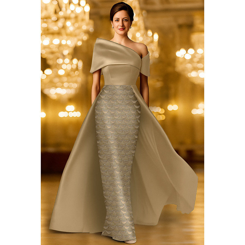 A-Line Sheath Column Floor Length Beaded Eembroidered Formal Dresses Mother of the Bride Dress Evening Gown Ball Gown with Overskirt Formal Dress Elegant Color Block High Split Short Sleeve Off