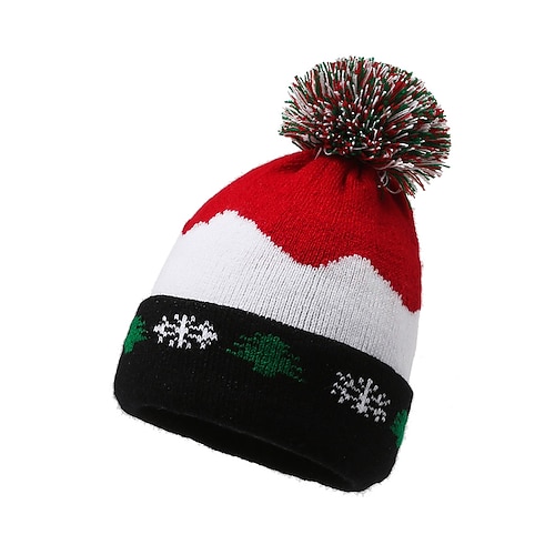 Weihnachtsstrickmütze für Damen – rot mit Rentiermotiv und Bommel, aus Polyester, perfekt für die Feiertage und die Winterzeit