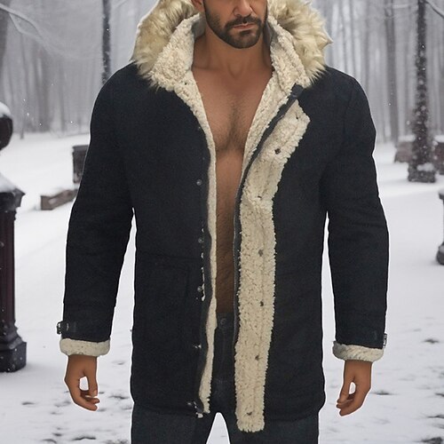 Per uomo Giacca Invernale Giacca Sherpa Vacanza Quotidiano Calore Termico Tasca Pile Inverno Semplice Moda Streetwear Con Cappuccio Regolare Nero Vino Cachi Caffè Giacca