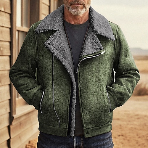 Per uomo Giacca in finta pelle scamosciata Giacca Invernale Giacca Sherpa Vacanza Quotidiano Calore Termico Tasca Pile Autunno Inverno Semplice Moda Streetwear Bavero Regolare Nero Marrone Giacca