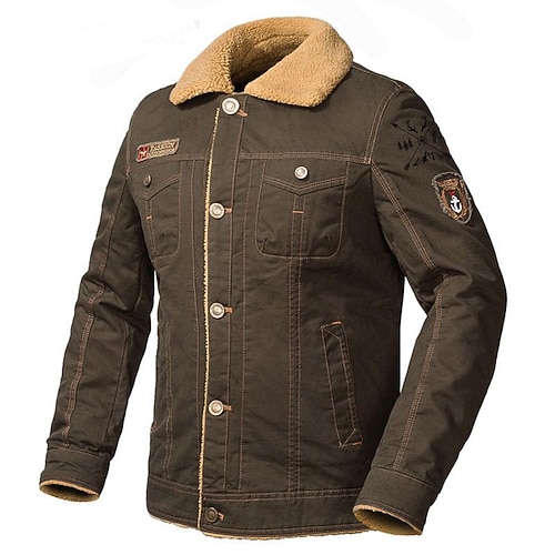 Per uomo Grafico Arrow Giacca in Pile Giacca Cargo Giacca Sherpa Tattico Calore Termico Vintage All'aperto Casa Casuale Ricamato Tasche Multiple Cappotti invernali Autunno Inverno Collo rovesciato in
