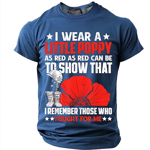 Gedenktag, Remembrance Day – Ich trage ein bisschen Mohnblume, so rot wie rot nur sein kann – Herren-T-Shirt mit rotem Mohnblumen-Motiv, patriotischem Aufdruck, Kurzarm, Rundhalsausschnitt,