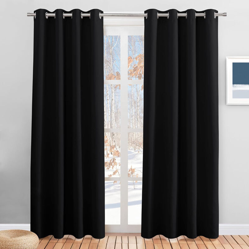 PONY DANCE Verdunkelungsvorhänge mit Ösen, 2 Paneele B140 x L220 cm, Schwarz