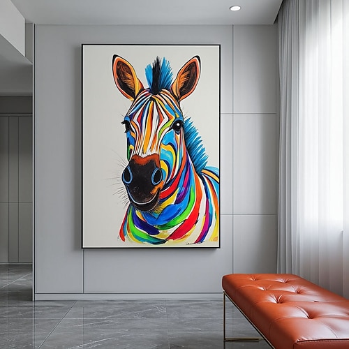 Zebra colorata, divertente, amante degli animali, dipinto astratto ad olio, arte da parete su tela, poster, decorazione per casa, cucina, soggiorno, regali a tema zebra