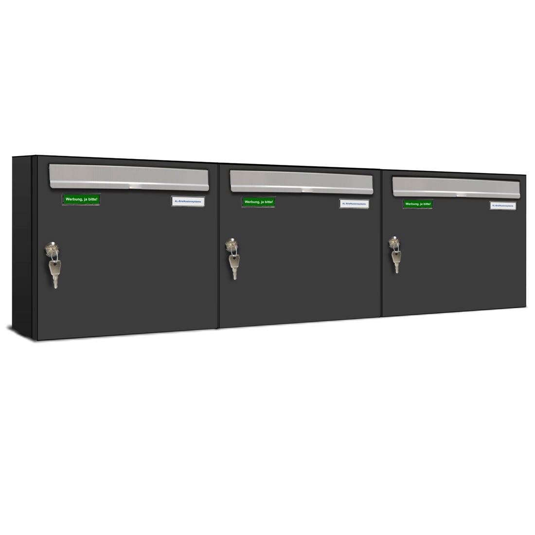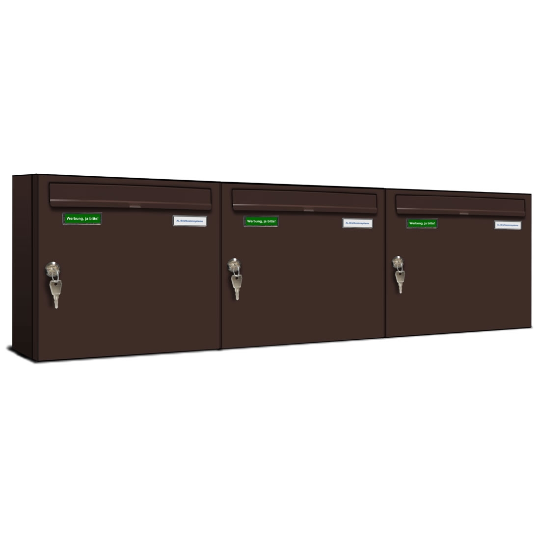 AL Briefkastensysteme 3 x Basic Wand Briefkasten in RAL 8017 Schokoladen Braun für Post A4, wetterfest, Artikelnummer: 431P3EA3P8017