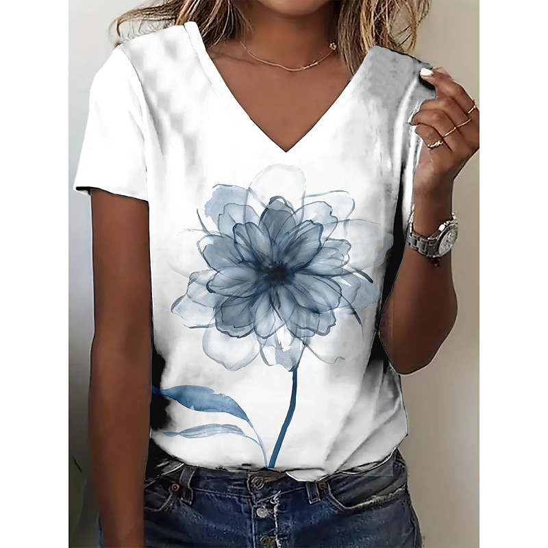 Women's T Shirt Casual Print Regular Tops Daily Blue Sky Blue Spring Fall