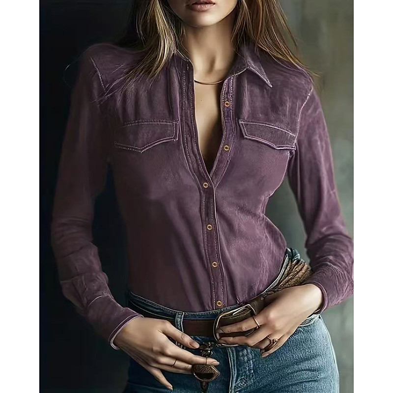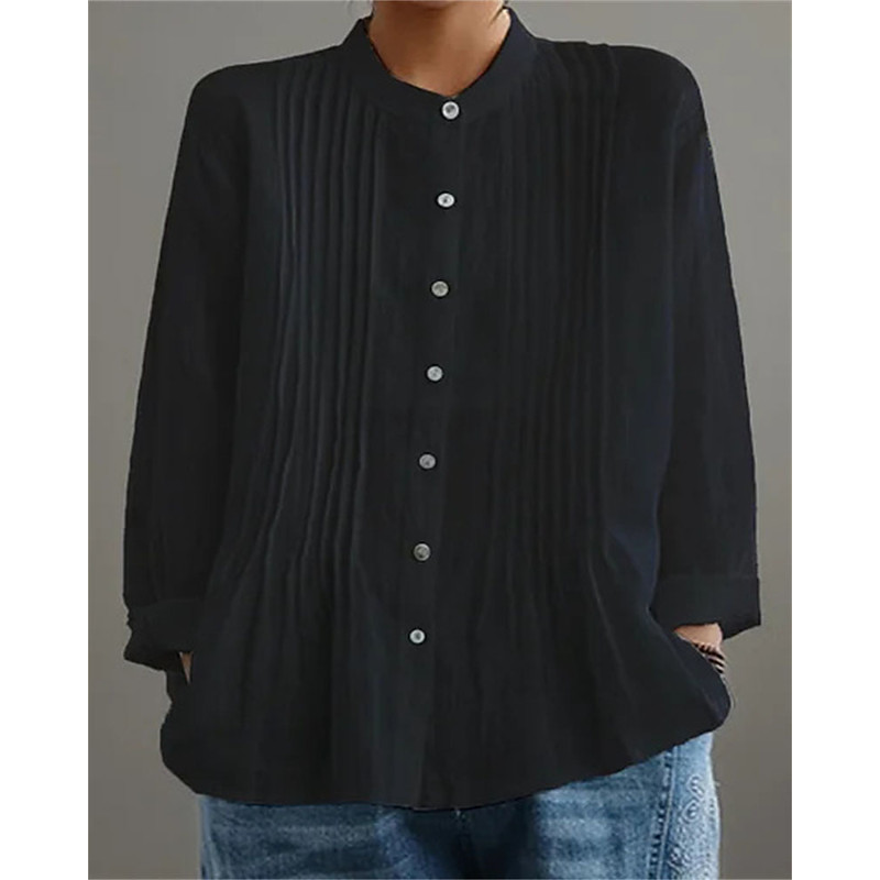 Women's Blouse Dressy Tops Solid Color Plain Elegant Vintage Stylish Long Sleeve Shirt Collar Regular Tops Daily Work Holiday Ruched Patchwork Buttons Blue Black Wine Light Brown Purple Fall Winter