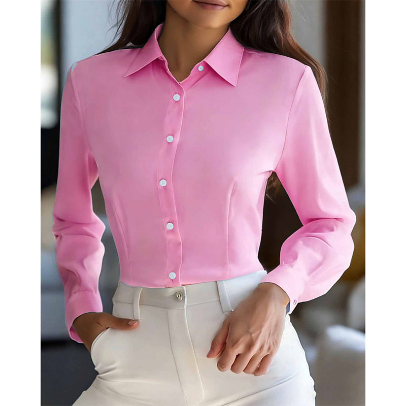 Women's Shirt Blouse Dressy Tops Plaid Plain Striped Elegant Vintage Tropical Long Sleeve Shirt Collar Regular Tops Daily Work Holiday Ruched Patchwork Buttons Blue Blush Pink Yellow Pink Light Brown