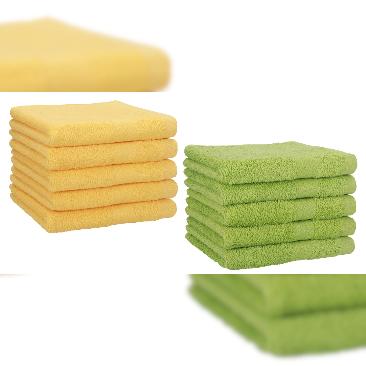Betz 10 Stück Gästehandtücher PREMIUM 100% Baumwolle Gästetuch Set 30x50 cm honiggelb und avocadogrün