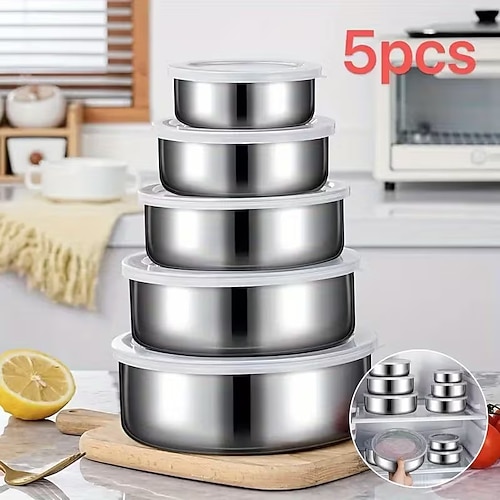 Set di 5 contenitori ermetici per alimenti con coperchi colorati, organizer per dispensa impilabili e resistenti, salvaspazio per la cucina contenitori da frigorifero per la preparazione dei pasti,