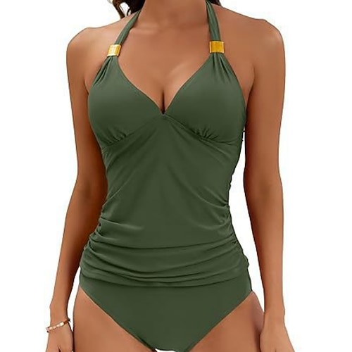 Per donna Costumi da bagno Intero Monokini Gonna Costume da bagno Rete Controllo della Pancia Vita alta Snello Senza schiena Vacanza Abbigliamento da Spiaggia Tinta unica Scollo a V Senza Maniche