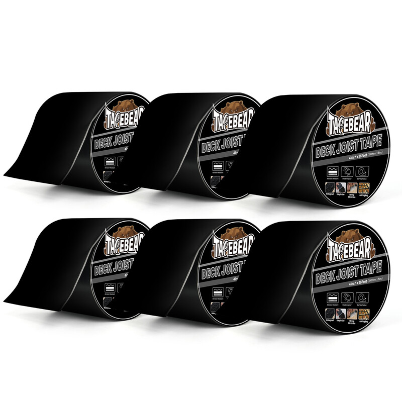 Ruban de lattis TAPEBEAR pour terrasses 10 cm x 4,88 m, Ruban de lattis Butyl étanche imperméable et résistant aux intempéries, Ruban anti-corrosion pour toit de VR, poutres et bordures de terrasses en bois, 6 rouleaux