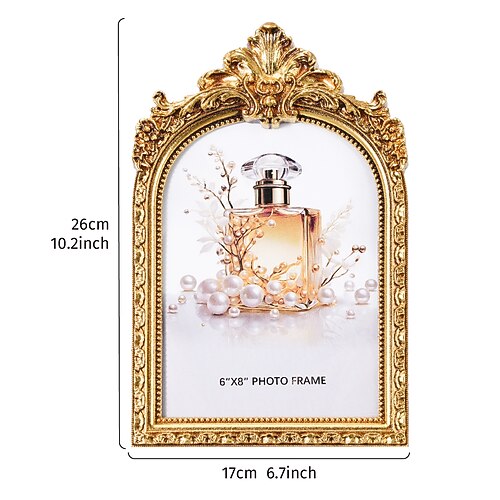 cornice decorativa vintage in pizzo ad arco oro/argento, decorazione da tavolo antica in stile europeo, perfetta per esporre foto, decorare la casa e come accessorio per la fotografia
