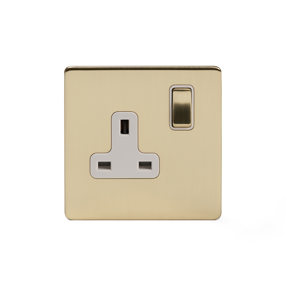 Soho Lighting Brushed Brass 13A 1 Gang Switched Socket - Double Pole Wht Ins Screwless