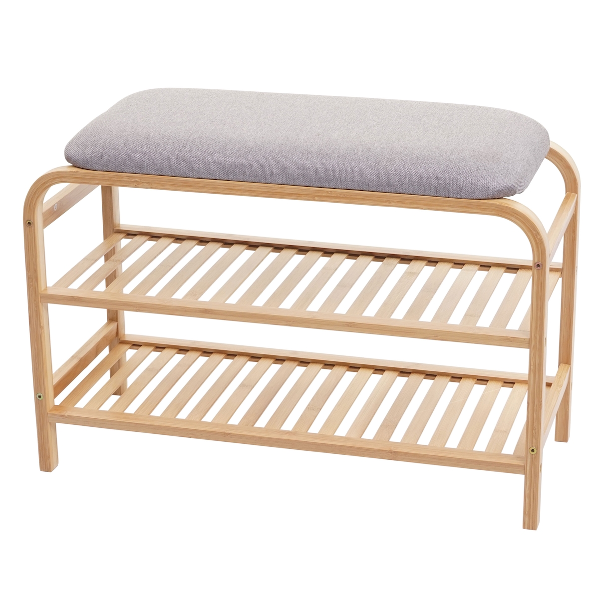 Mendler Schuhregal HWC-F72, Sitzbank Polsterbank Schuhablage Schuhschrank, Ablagefach Bambus 50x70x30cm