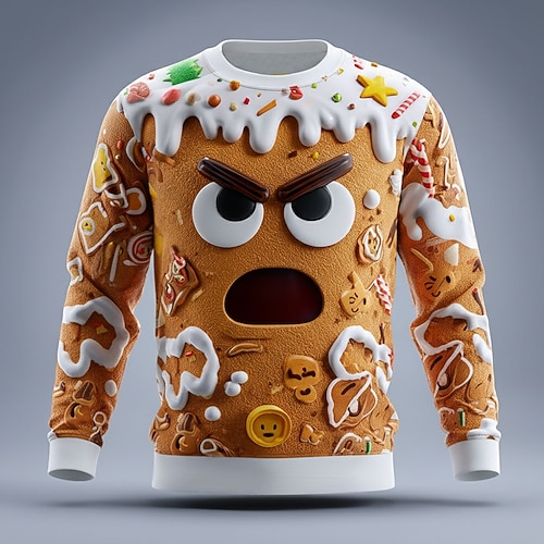Weihnachten Herren Lebkuchenmänner Pullover Cool Party 3D Langarm Rundhalsausschnitt Urlaub Party Geschenk Braun Braun 2 Braun 4 Braun 3 Rundhalsausschnitt 3D Ganzjahres Designer S M L XL XXL XXXL