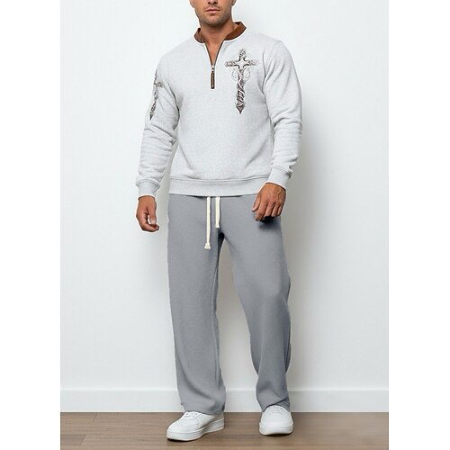 Per uomo Maglia Tuta da Ginnastica Pantaloni da Tuta Set di abiti Collo alla coreana All'aperto Quotidiano Sportivo Coulisse Tasca Mezza cerniera Blocco di colori Croce Bianco Azzurro cielo Grigio
