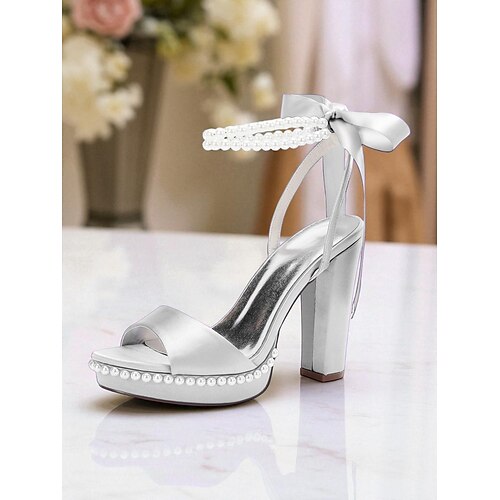 Damen-Plateau-Pumps aus rosa Satin mit Perlen-Fesselriemchen und Schleife – elegante High-Heel-Sandalen für Cocktailpartys und formelle Anlässe